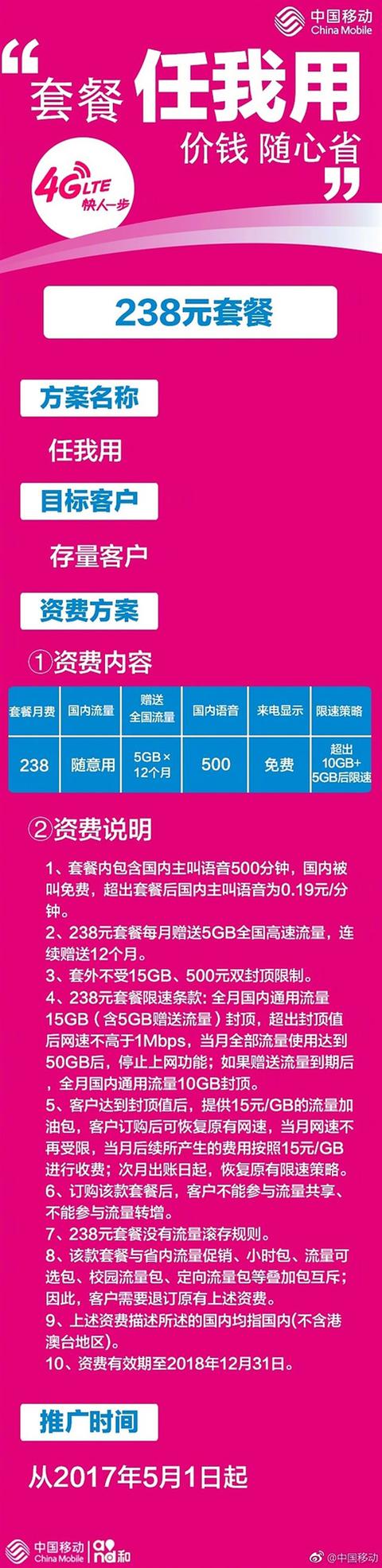中关村在线消息:日前,移动宣布自5月1日起,启动新一轮的提速降费措施。将针对新客户推出188元和288元两档“任我用”流量包月套餐,分别包含12GB和20GB流量。针对老客户提供238元15GB流量的“任我用”流量包月套餐。今天,中国移动正式公布这三个套餐的详情,从此详情来看,并非完全是“任我用”。中国...