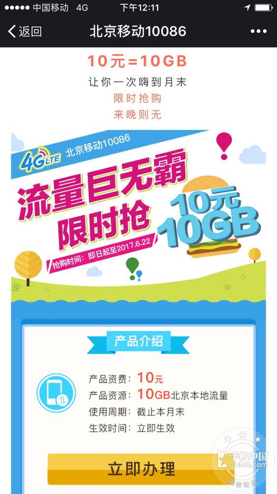 河北移动10元10g特惠流量包(北京移动10元10G流量福袋)