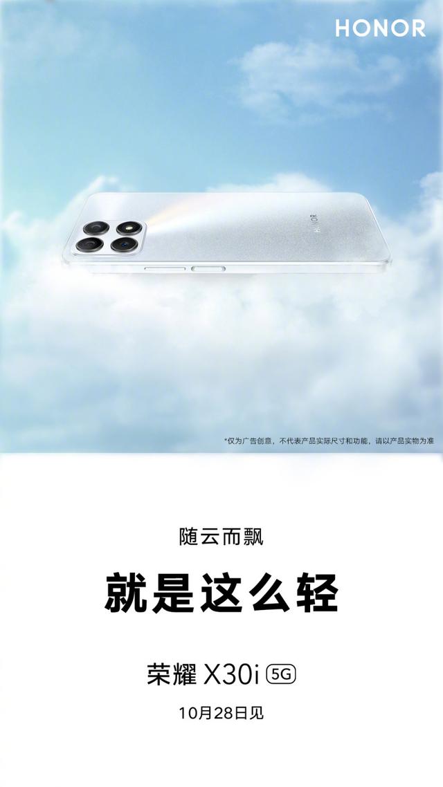 荣耀X30i官宣,主打轻薄今天上午,荣耀手机官方宣布,将于10月28日发布旗下新机荣耀X30i,主打轻薄机身设计,并放出三张宣传海报。根据官方海报显示,新机采用的是直角边框设计,背面为方形相机布局,后置三摄镜头模组,拥有磨砂银配色。按照命名来看,该机归属于X30系列,定位中低端,售价预计在千元...