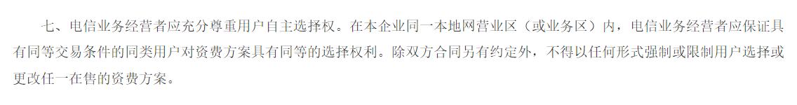 然鹅,工信部早在《关于进一步规范电信资费营销行为的通知》就作了明确规定: