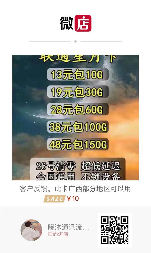 5、联通星月卡。这款卡禁区广西可以使用。其他禁区就不可以了。剩下全国通用。