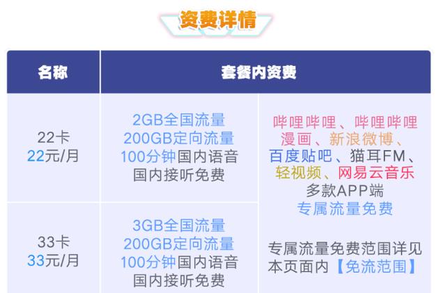 图:中国联通跟B站联合推出的哔哩哔哩免流卡