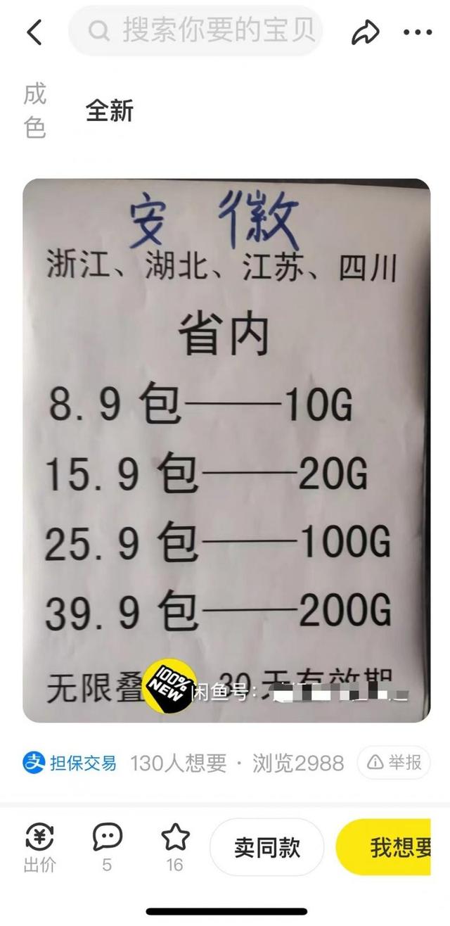 近日不少网友反映,在朋友圈、抖音、闲鱼等渠道,常常可以看到低价的手机卡套餐广告,29元等就有80G、10元100G流量等……但记者调查发现,这些套餐以低价吸引用户注册,但实际上背后存在定向流量、话费返赠等活动才可以达成套餐价格的附加条件。不仅如此,电话卡的归属地并非用户所在地本地,而是湖南、河南等省份,售卖方根本没有进行提示。