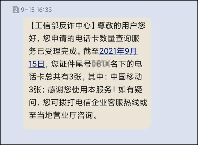 以上是我在查询之后收到的短信内容。可以看出,我办理了中国移动的三张电话卡。
