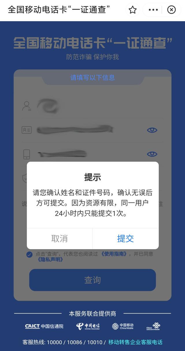 需要注意的是这个查询结果并不会显示详细的内容,只是会告诉你办理了哪个营运商的几张电话卡。如果发现自己真实使用的电话卡数量与查询到的数量不符的话,建议立刻拨打运营商的客服热线或者到当地营业厅进行详细情况的查询。