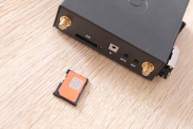 另一面则设置有Wifi天线和4G天线接口、SIM卡槽、地线接口、WPS和RST键。