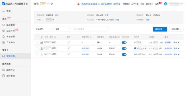 然后选择“智能组网”进一步进行“绑定账号”,完成绑定后点击“我要组网”创建网络,然后添加网络成员即可,不需要公网IP也能实现异地组网。而且整个过程会有自动引导,小白操作都完全没问题。