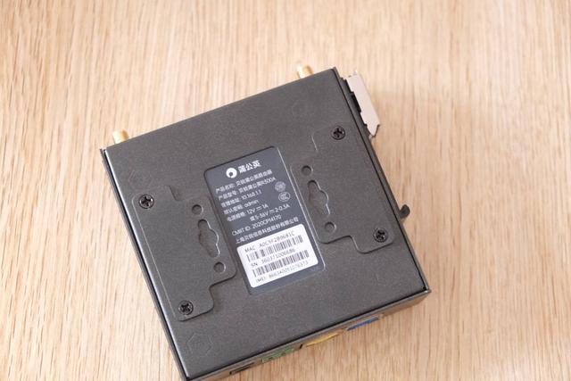 主机111mm*94mm*28mm的尺寸,看起来也并不大,单手就能拿起来,外壳做了磨砂工艺,手感很不错,重量方面在648g左右,不愧是工业级路由器,握在手里就能感受到它的分量。