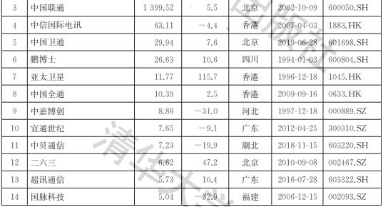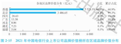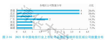 在2021中国电信行业上市公司品牌价值榜中,14家公司来自7个地区。