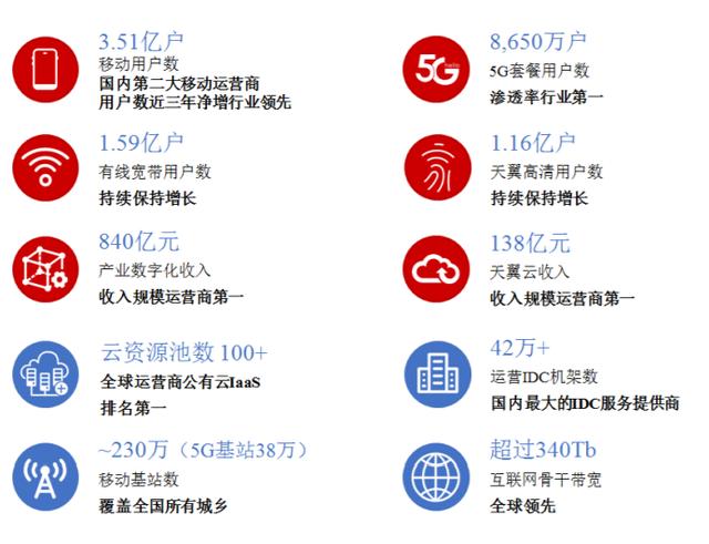 根据中国电信招股书,截至2020年底,公司的移动用户规模达到3.51亿户,净增用户数连续三年行业领先,其中5G套餐用户达到8,650万户,渗透率达到 24.6%,位居行业第一。