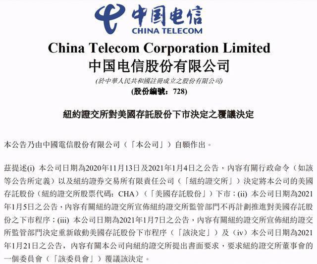 (原标题《复议失败,三大运营商将从纽交所集体退市》)