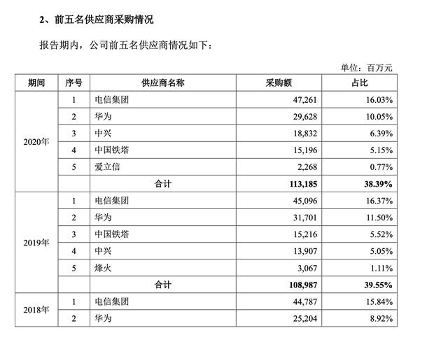 而据中国电信的招股书,2020年中国电信的前五大客户分别是电信集团、腾讯、阿里巴巴、中欧移动、百度,同年供应商则为电信集团、华为、中兴、中国铁塔、爱立信。