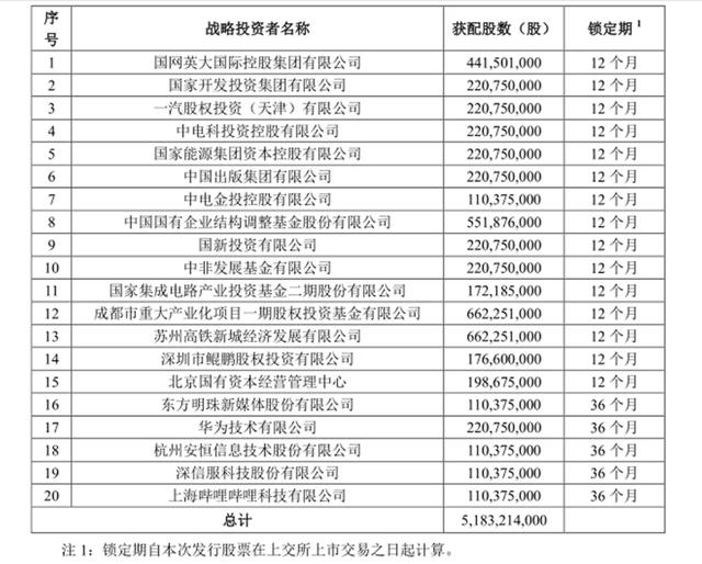 中国电信此次预计发行人募集资金总额为470.94亿元,若全额行使超额配售选择权,募集资金则达到537.27亿元,除此之外,还有包括国网英大、东方明珠、华为、哔哩哔哩等20家大型企业、产业基金、互联网大厂所组成的“豪华天团”成为其战略配售伙伴,获配股数518.32亿股。