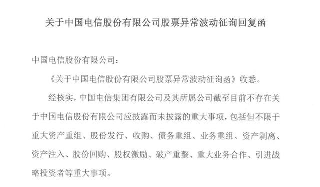 对此,中国电信方面表示,市场行为是无法预测的,买卖行为由市场决定。公司方面对于股价非常关注,一方面有“绿鞋机制”,如果股价跌破发行价会采取行动,此外还有一系列稳定A股股价的预案举措,如大股东增持、股份回购预案等。