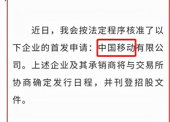这家巨头是中国移动,12月13日晚,证监会核发中国移动IPO批文,中国移动上市基本板上钉钉。