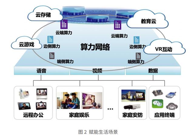 在家庭场景中,智能终端的算力也可以充分共享和复用。比如,家用电脑、智能机顶盒等家用智能终端,可与其它家庭智能终端联网,提供数据存储和智能分析的能力;智能手环、智能冰箱、智能微波炉、智能体脂秤等应用和数据的协同,可实现对用户身体状态、饮食偏好、烹饪情况的综合分析,提供完整的身体健康服务。算力网络会为用户提供灵活组合的场景化服务,让用户享受智简无感的服务体验。