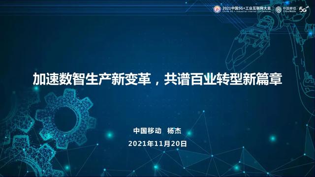 11月19-21日,工业和信息化部、湖北省人民政府在武汉举办2021中国5G+工业互联网大会。本届大会以“5G赋能、百业互联、智领未来”为主题,中国移动杨杰董事长出席大会主论坛,并作题为《加速数智生产新变革,共谱百业转型新篇章》的演讲。