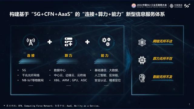 杨杰表示,面向新的历史阶段,中国移动将锚定世界一流信息服务科技创新公司的目标定位,按照“力量大厦”战略部署,全力推进“新基建”、融合“新要素”、激发“新动能”,构建基于5G+算力网络(CFN)+智慧中台(AaaS)的“连接+算力+能力”新型信息服务体系,加速实现网络无所不达、算力无所不在、智能无所不及,推动工业互联网发展迈入新阶段,助力数字经济蓬勃发展。