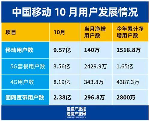 11月22日,中国移动公布了10月用户增长情况。
