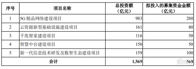 根据招股书显示,中国移动此次拟募资560亿元,这将成为A股十年来最大的一场募资。此次募资扣除发行费用后,将全部用于投入以下项目: