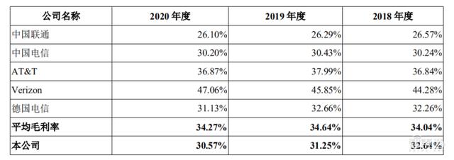 报告期内,中国移动在2018年-2021年(1-6月)的毛利分别为2405.33亿元、2331.09亿元、2348.10亿元和1305.09亿元,毛利率分别为32.64%、31.25%、30.57%和29.42%。