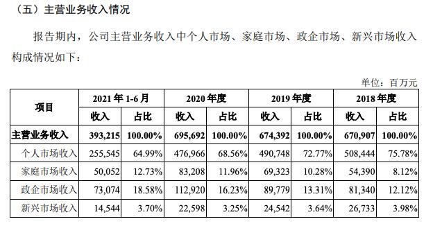 分业务来看,个人市场,截至今年6月底,中国移动的移动业务用户达到9.46亿户,净增359万户,其中5G套餐客户达到2.51亿户,净增0.86亿户;移动ARPU为52.2元,同比增长3.8%,扭转了自2018年以来的下滑趋势;个人市场收入达到2555亿元,同比增长0.7%。