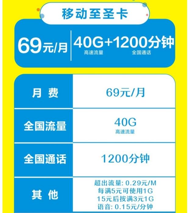 说起移动数据流量,很多网友都很注重自己的手机卡。日前,运营商中国移动这边也非常暖心,给大家带来一款高速流量超多的套餐,就是移动至圣卡。简单的说,这张卡就是中国移动暖心了,其用69元带来40GB流量+1200分钟,有网友进行评价:无套路!