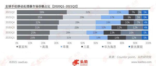根据数据机构Counterpoint最新研究报告显示,2021年第三季度全球手机处理器市场份额的40%都被一家公司占据,不仅如此,这家公司与苹果华为三星均没有任何关系,却已持续一年多占据市场份额领先地位。