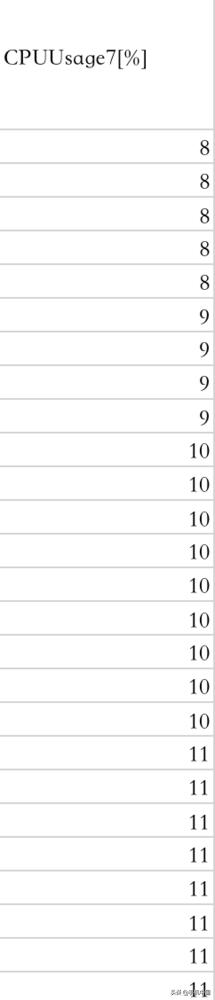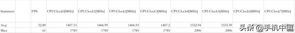 当70分钟的《原神》结束后,我们导出了PerfDog详细的表格数据。只是单一的数据呈现在文章中似乎并不能直白的将结果表现出来,于是我们拉来了一份已经上市的骁龙8 Gen1成品终端的数据来和天玑9000测试机的数据进行比较,骁龙8 Gen1成品终端在生成数据时,其游戏的画面设置、游戏时间、以及场景设置和天玑9000测试时完全相同,在这两份数据中,由于两款产品均使用了“1+3+4”的旗舰级三丛架构设计,所以表格中相对应的CPU编码完全一致:CPU0-3的编码为四个能效核心,CPU4-6的编码三个性能大核,CPU7则代表着X2超大核。