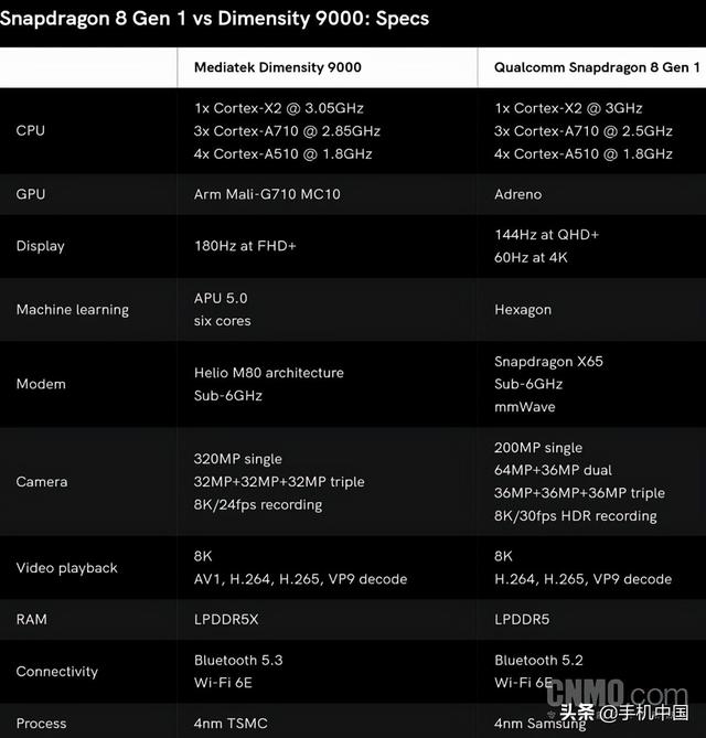 对比晚它半个多月发布的骁龙8 Gen1,天玑9000在纸面参数上和对方可谓是打的有来有回,不同于之前的产品,此次天玑9000无论是从制程工艺、CPU架构、系统缓存,RAM制式以及AI等方面都达到了“高端旗舰芯片”的标准,甚至有部分参数一度超越了骁龙8 Gen1,所以在“起跑线上”,如今的天玑9000首先便不会落后于它人。
