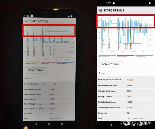 PCMark成绩 左:骁龙8 Gen1 右:天玑9000