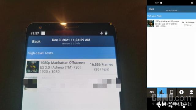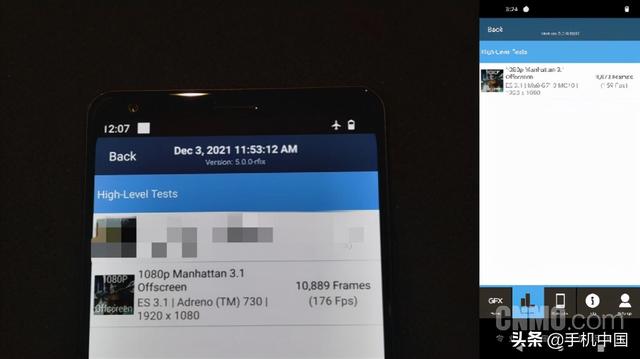 曼哈顿3.1(1080p)成绩 左:骁龙8 Gen1 右:天玑9000