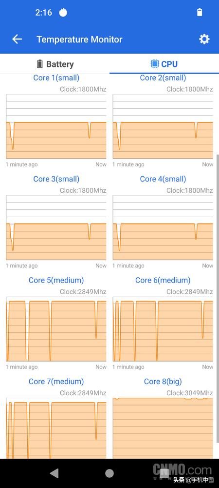 而骁龙8 Gen1很明显是将整个芯片的重任放在了那3个A71架构的性能核心与4个A51架构的能效核心上,1+3+4八个核心的使用率基本持平,X2超大核使用率的高低完全不会影响剩余七个核心的使用率,再加上X2超大核有时候“摸鱼”摸得厉害,所以在游戏帧率的稳定性,以及能效和发热上面,自然是要比天玑9000上下的幅度更大。