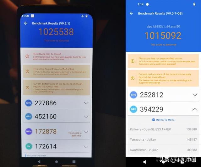 那么天玑9000的安兔兔成绩能够说明什么呢?首先从跑分的总成绩来看,天玑9000的工程测试机和目前已经发布的骁龙8 Gen1的工程测试机数据相比,普遍要落后10000分左右,而经过细致的比较,这10000分的差距全部来自于GPU的部分,恰好符合了天玑9000和骁龙8 Gen1两款产品在参数上的短板与强势部分。