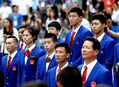 8月16日上午9时45分,中国体育代表团换下了“番茄炒蛋”出场服,身着新款礼服“蓝色梦想”在雅加达亚运村举行了升旗仪式。