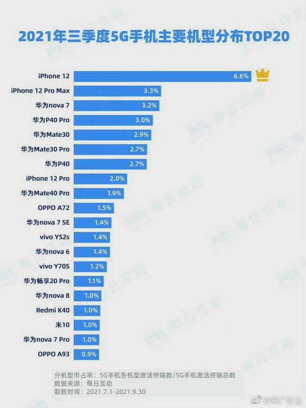 从上述数据来看,该机构统计的范围应该是国内的5G手机市常早在5G手机普及之前,华为就已经推出了很多5G手机,其销量一度占据国内手机市场几乎一半的份额。但从华为P50系列开始,华为的5G手机业务几乎中断,只能销售4G手机。