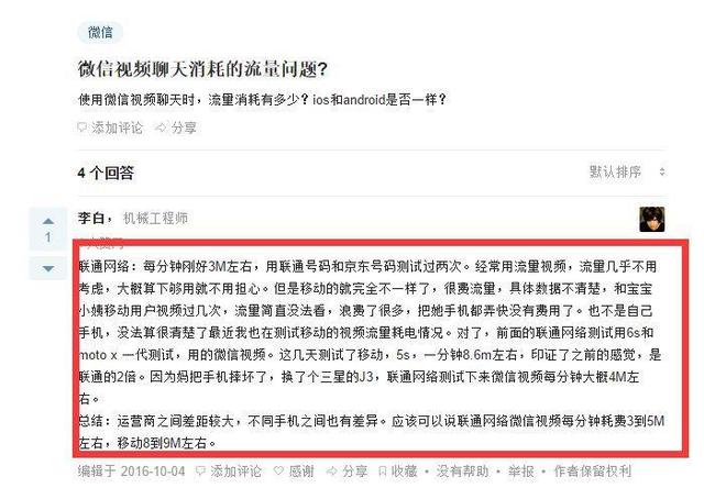3.强迫症的筒子不要买。我看贴吧里讨论大王卡的免流问题的帖子不少,比如像微信视频聊天,因为技术原因(据说是P2P技术限制)不在免流范围内,需要花1块钱买500m。不过这个对我来说,影响不大,因为我不经常使用微信视频聊天啊,一般就是发文字什么的。但是,微信视频聊天很耗费流量吗?知乎上有大神解答了,微信视频聊天采用压缩技术,貌似联通网络1分钟也就3、4M左右,这么算下来,一天聊一个小时也才200多M,1块钱500M完全包得住。