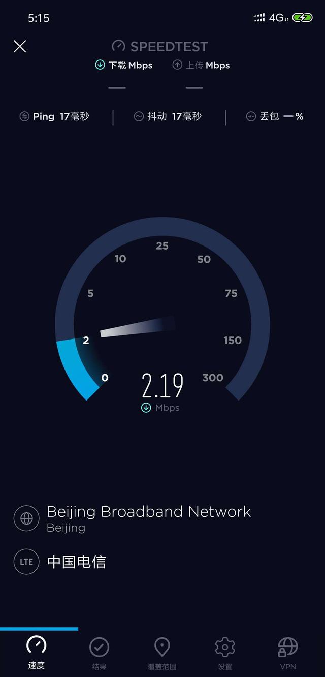 大胖用大名鼎鼎的SpeedTest测试了了下这卡的网速。