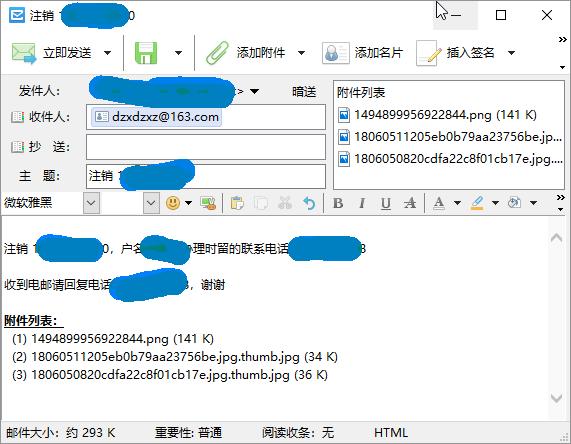 都准备好后,发电邮给dzxdzxz@163.com 这里不得不吐槽下北京电信网厅,注销号码这么严肃的事情,竟然使用一个这么不严肃的第三方邮箱。