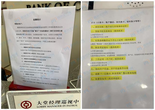 其中,身份证、手机号入网时长几乎是各银行的硬性要求,而社保证明、工作证明以及居住证明等其它材料则需要看银行自身的要求。另外,银行工作人员在办理开卡业务时,必须询问用户的开户用途、观看“一日卖卡,终生受限”的视频以及签署告知书。