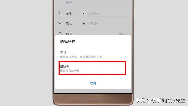 4、在弹出“选择账户”对话框后,点击“SIM卡”。