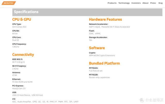 在入门级别Wi-Fi6路由器中我们可以看到的MT7622芯片的具体型号是MT7622B,它把蓝牙等一些多媒体功能给阉割了,主打路由器市场。因为MT7622B只集成了2.4G无线功能,所以还需要配合5G无线芯片才能实现对5G Wi-Fi的支持,MTK为其匹配了MT7915A方案。