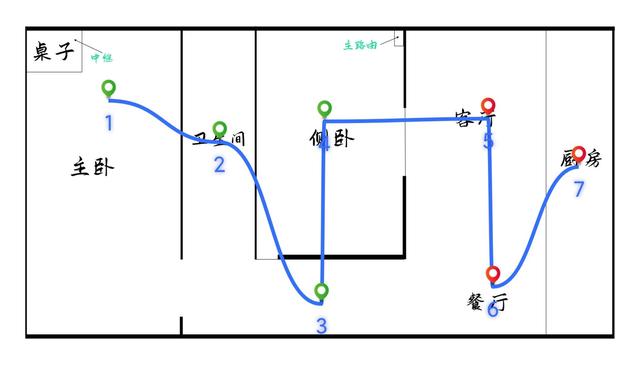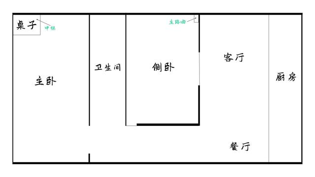 这是我目前的居住环境,画图比例有些失调,但是格局差不多,因为各种历史装修问题造成现在的格局,电脑和 NAS 都在主卧室的桌子上,为了使主卧室也有畅快网络,不得不新增一台路由,为了测试中兴路由器,我用它取代了以前的路由器,看看信号怎么样吧。
