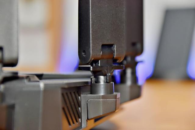 侧边的散热格栅呈对称式设计,还有居中的三角形工作指示灯,细节把控到位,增添了美感。