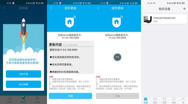 按照说明书提示,还可以下载安装「中兴智能家居」APP 对路由器进行绑定设置,还能对路由器进行系统更新。