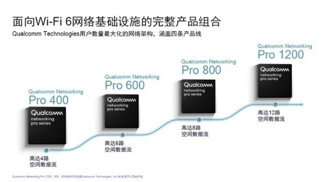 高通是先进Wi-Fi6解决方案的重要提供者,市面上的很多移动手机以及其他终端设备都采用了高通技术。在路由器方面,高通在2019年、2020年分别推出了高通专业联网平台(Networking Pro)和沉浸式家庭联网平台(Immersive Home Platforms),其中高通专业联网平台专为满足时下Wi-Fi网络的密集连接需求而打造,Wi-Fi 6特性可以为大学报告厅、购物中心、体育馆和写字楼等高密度环境提供更高的网络容量,包含400、600、800、1200四个层级,其中最高层级的高通1200专业联网平台支持8×8MU-MIMO,最高支持1500个用户。