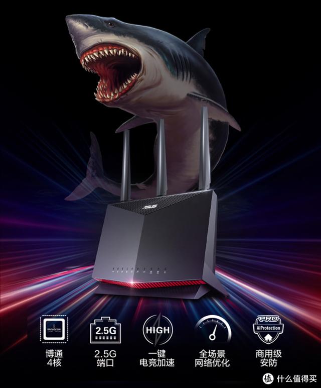 前几年的华硕八爪鱼在数码界可谓是出尽风头,现在在WIFI6普及的情况下,它当然又推出了一款更猛的次旗舰级路由器,一样犀利的八爪鱼造型,配上正上方的败家之眼信仰呼吸灯,如果在实力允许的情况下,你说还有那个数码爱好者能抗拒它的诱惑?配置上,和AX86U一样,CPU也是BCM4908 4核1.8GHz Cortex-A53 架构,5G芯片都是BCM43684,2.4G芯片也是BCM43684。其他特性支持华硕AiMesh组网,三重游戏加速、2.5G游戏端口、轻松端口转发、自定义功能强化键和AURA RGB神光灯效等也应有竟有,不差钱的小伙伴直接冲就对了!