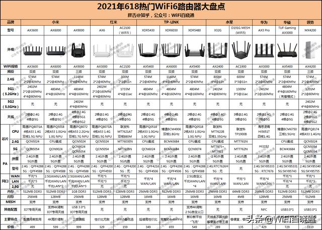 2021年热门WiFi6路由器,详细配置如下表格所示:
