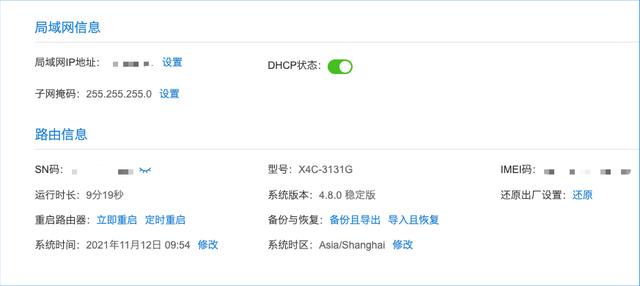 当采用有线网络连接之后,在路由器的系统信息界面,就能够看到每个网口的连接状态,还有当前路由器的运行状态。这里的设置就和常规路由器没有太大区别,所以就不在过多说了,今天我就重点体验一下4G的联网方式。