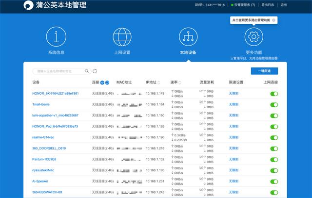 这个蒲公英路由器不仅有强悍的4G网络组网功能,还能够管理连接在上面的各种本地设备,方便用户查看有没有人偷偷的蹭网,或者某台设备突然发生大流量的下载,来确保网络的稳定。
